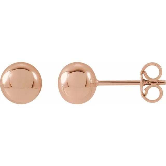 Simple, classic, and always in style—our 14K Gold Ball Stud Earrings are a must-have staple. Available in Yellow, White, and Rose Gold, each pair is secured with comfortable pressure backs and comes in a range of sizes from 3mm to 8mm, perfect for layering or everyday wear.