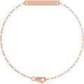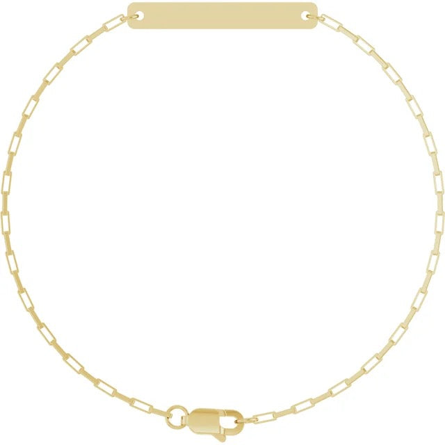 A modern classic with a personal touch. This sleek 7-inch bracelet features a trendy paperclip-style link and secure lobster clasp, available in 14K Yellow, Rose, White Gold, or Sterling Silver. Perfect for custom engraving, it makes a meaningful gift or signature piece you’ll wear every day.