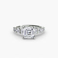 Designed with side stones that gracefully complement the center stone, this ring strikes a balance between classic elegance and added brilliance. Perfect for those who want a refined look with just the right amount of sparkle.