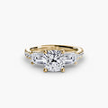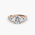 This elegant three-stone ring symbolizes your past, present, and future, elevated with a pavé band for extra sparkle and detail. A perfect union of meaning and brilliance.
