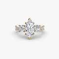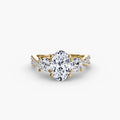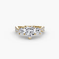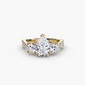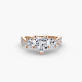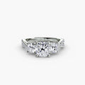 This elegant three-stone ring symbolizes your past, present, and future, elevated with a pavé band for extra sparkle and detail. A perfect union of meaning and brilliance.